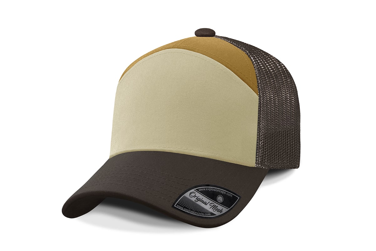 Frente superior Amarillo Trigo, Frente centro Hueso, Visera Café, Trasero Café