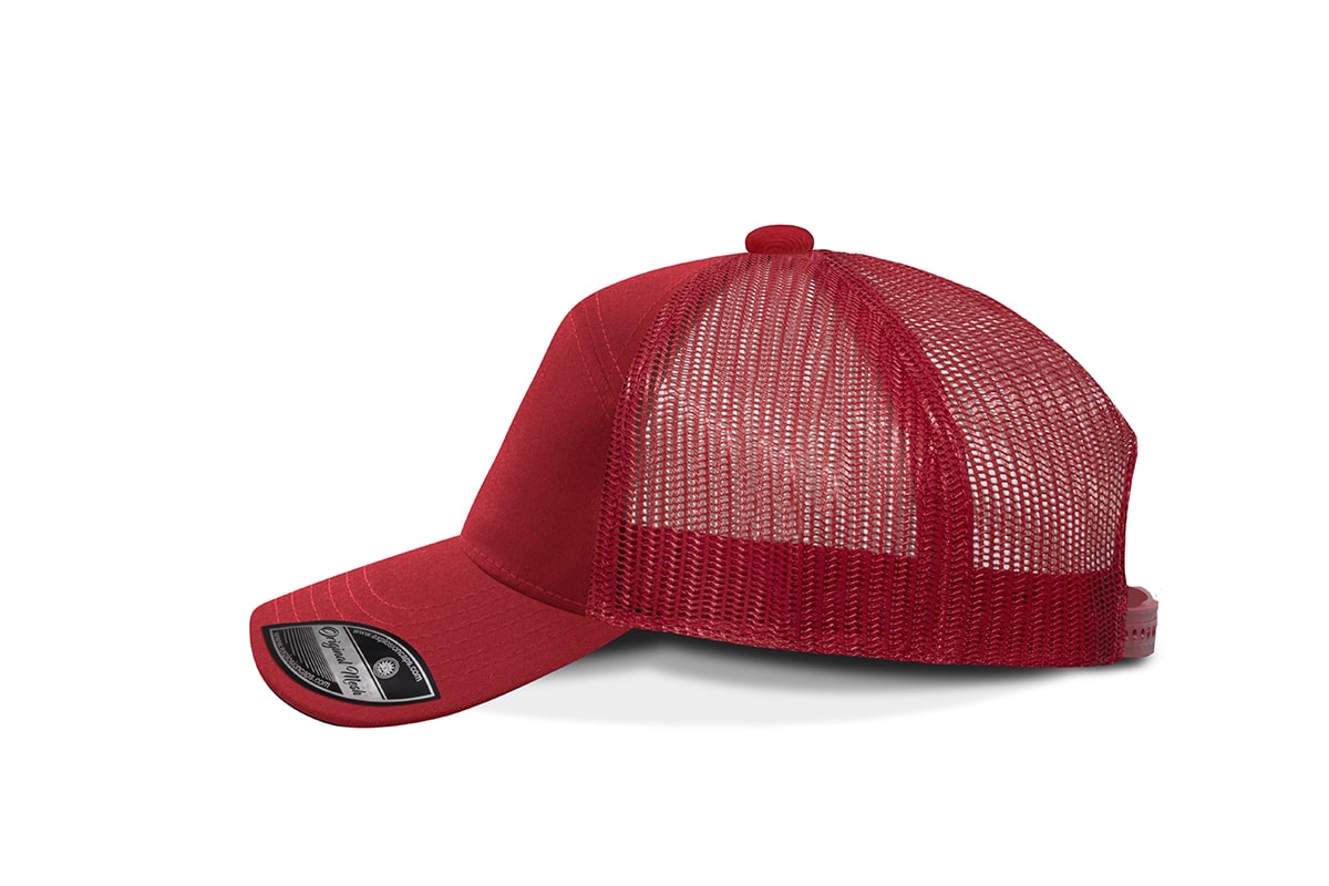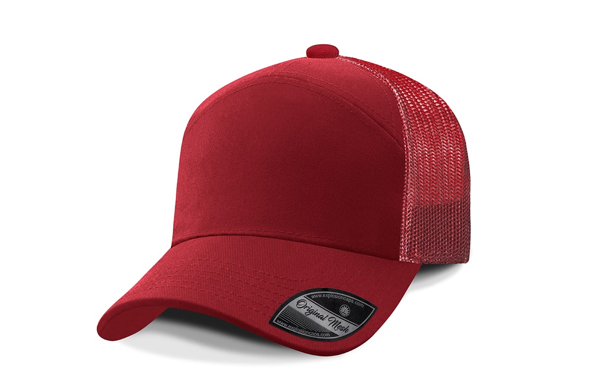 Modelo que destaca por su frente amplio, además posee frente rígido, malla, corte alto, visera curva preformada y broche de plástico. tiene una composición de 20% algodón y 80% poliéster.