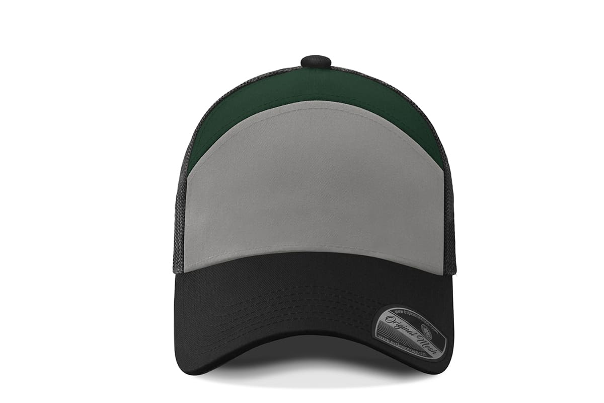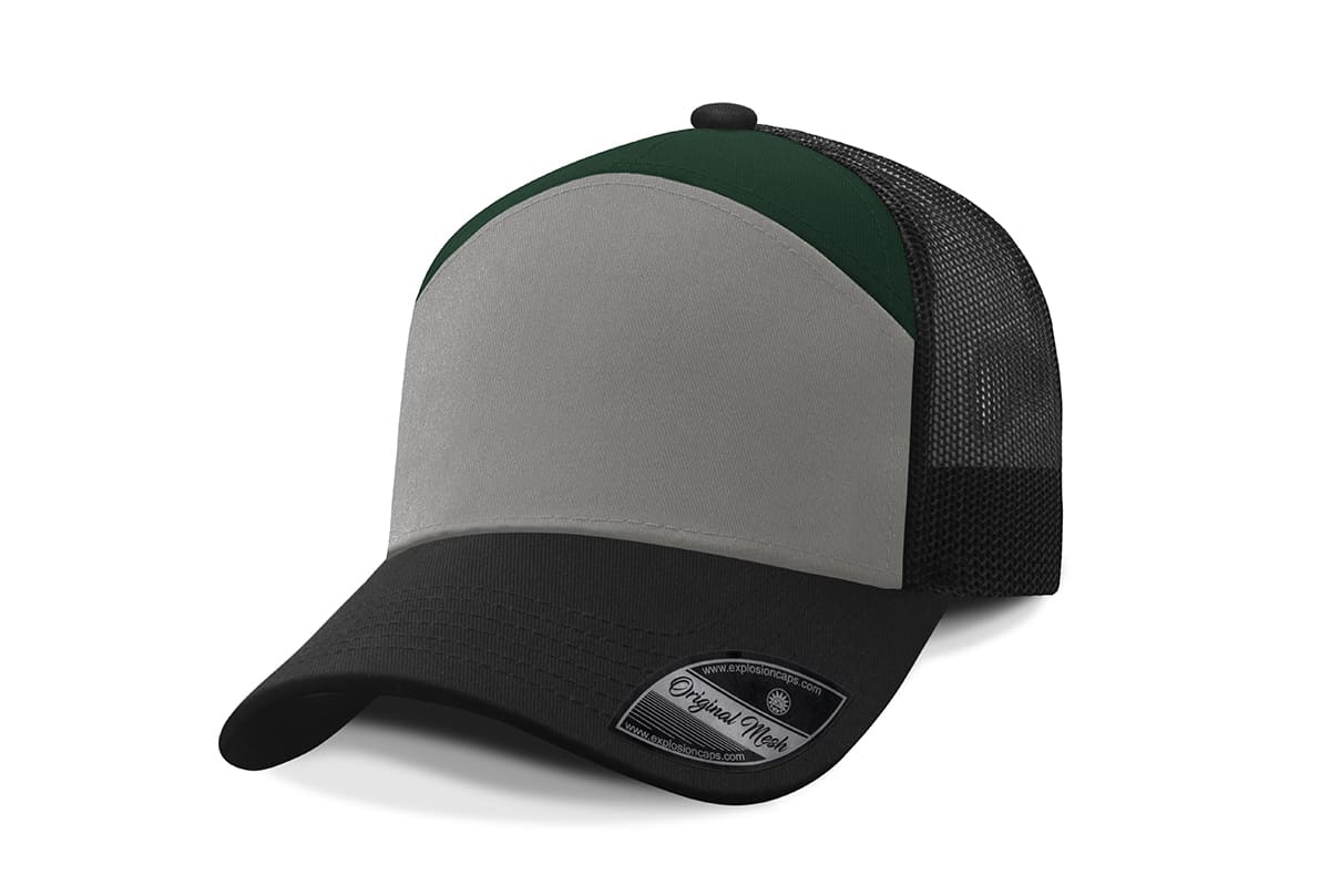 Frente superior Verde Botella, Frente centro Gris Claro, Visera Negro, Trasero Negro