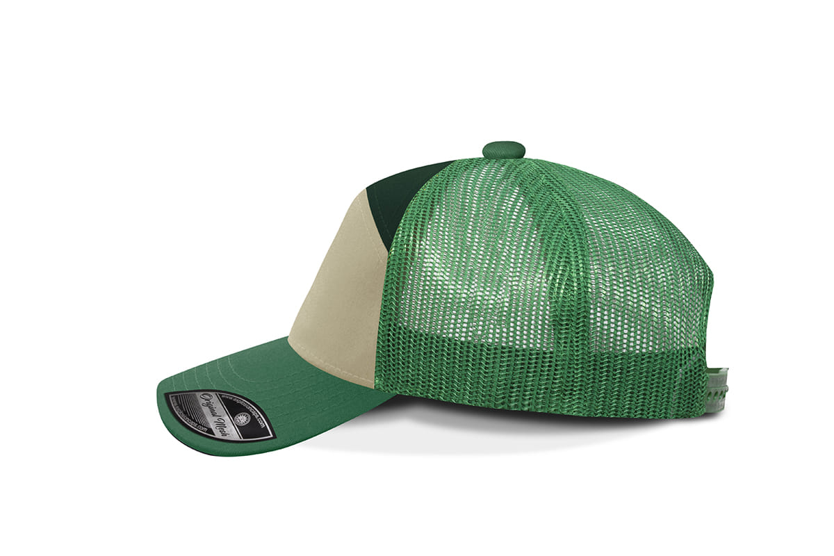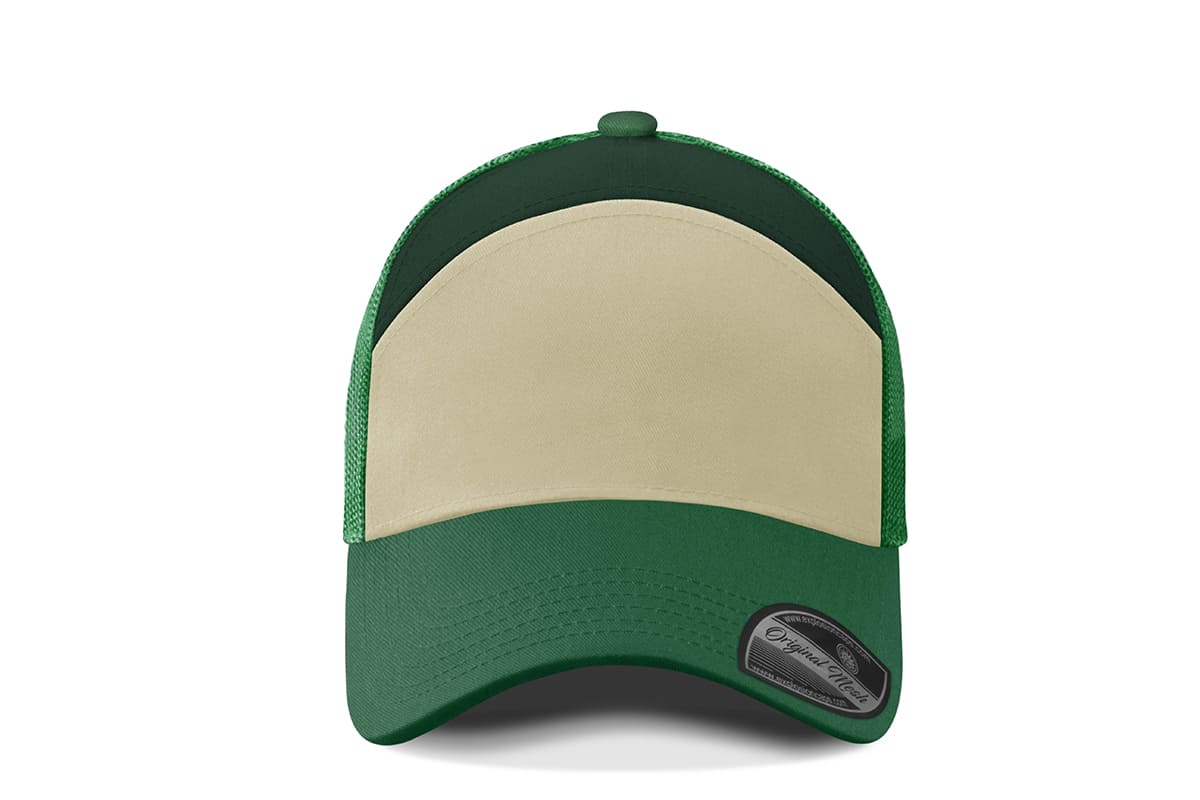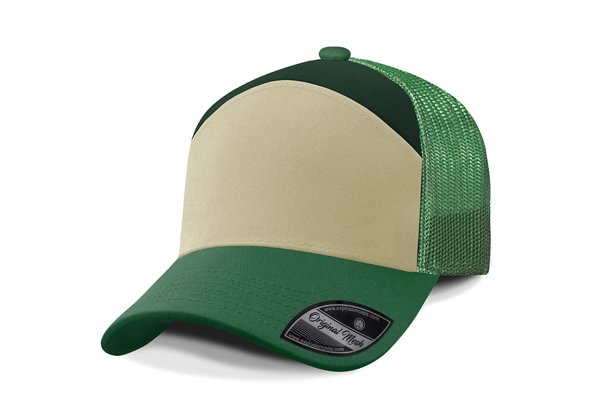 Frente superior Amarillo Trigo, Frente centro Hueso, Visera Verde Botella, Trasero Verde Botella