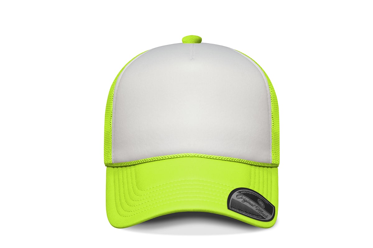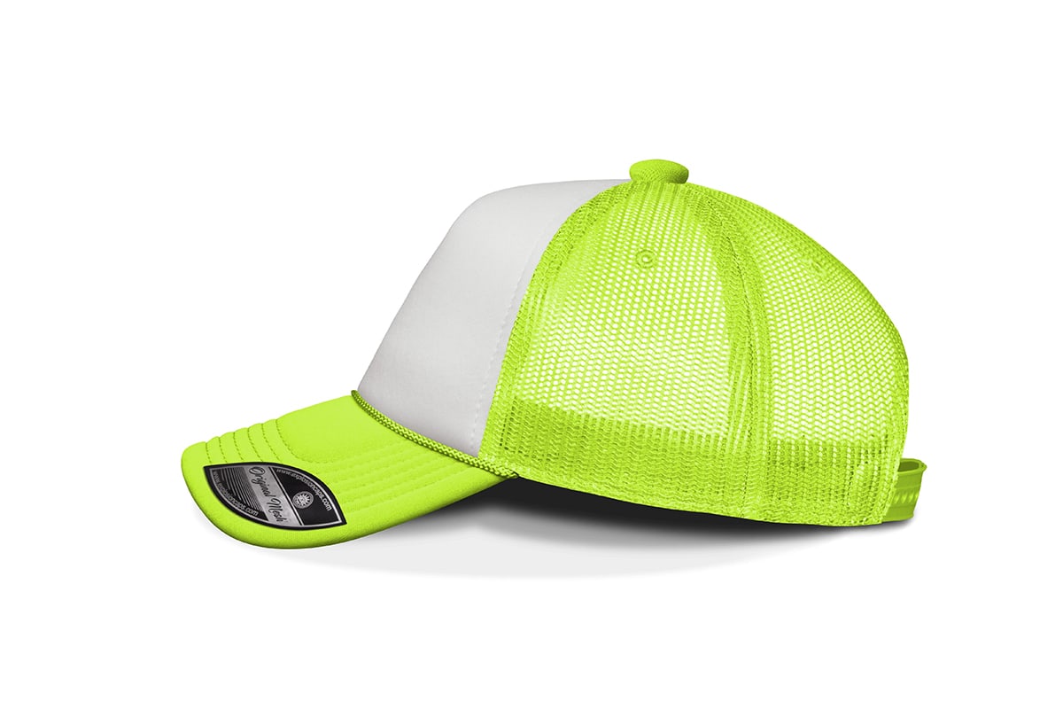 Inicio Colores Blanco Gorra Bomba, Frente Blanco, Visera Amarillo Neón, Trasero Amarillo Neón
