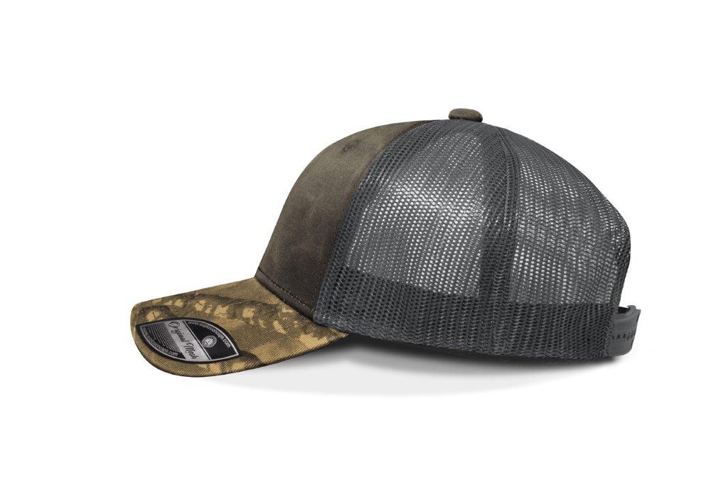 Gorra Bunker, Frente Café, Visera Camuflaje Selva, Trasero Gris Obscuro