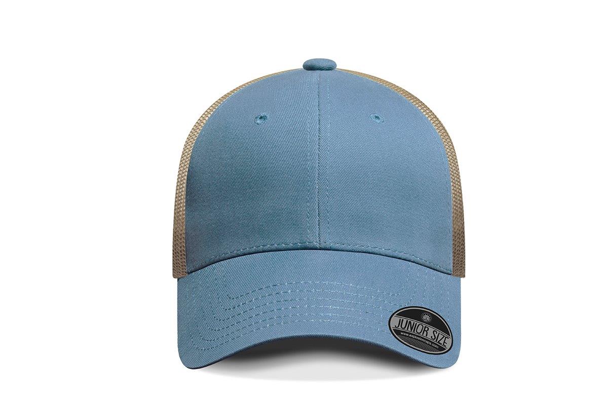 Frente superior Azul Cielo, Frente centro Hueso, Visera Amarillo Trigo, Trasero Arena