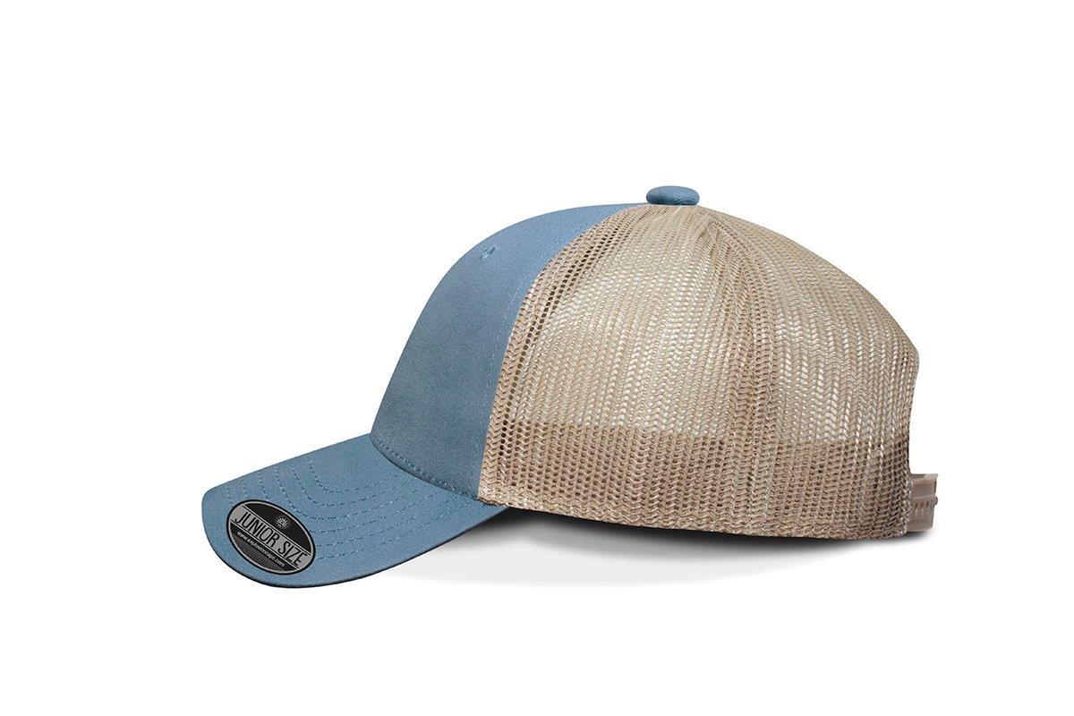 Frente superior Azul Cielo, Frente centro Hueso, Visera Azul Marino, Trasero Azul Marino