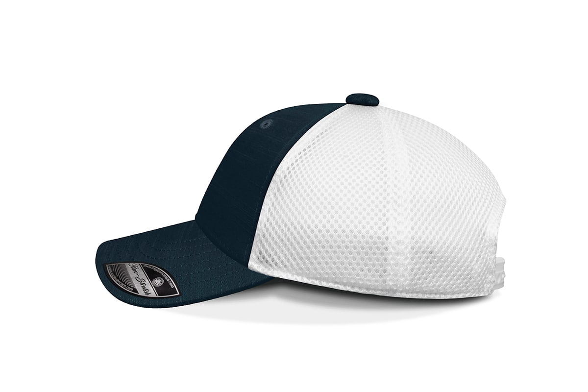 al ser una gorra de corte alto y frente rígido, posee una visera curva preformada y tiene una composición de 60% algodón y 40% poliéster.