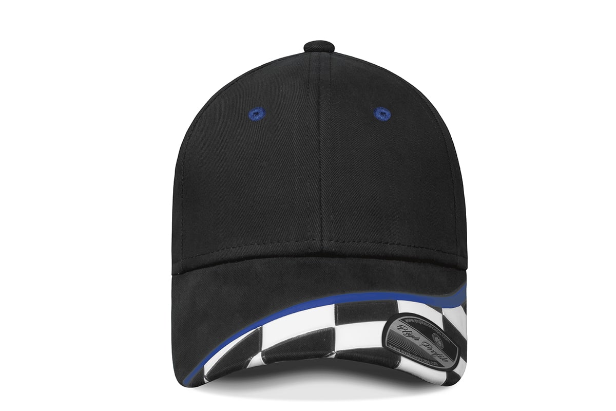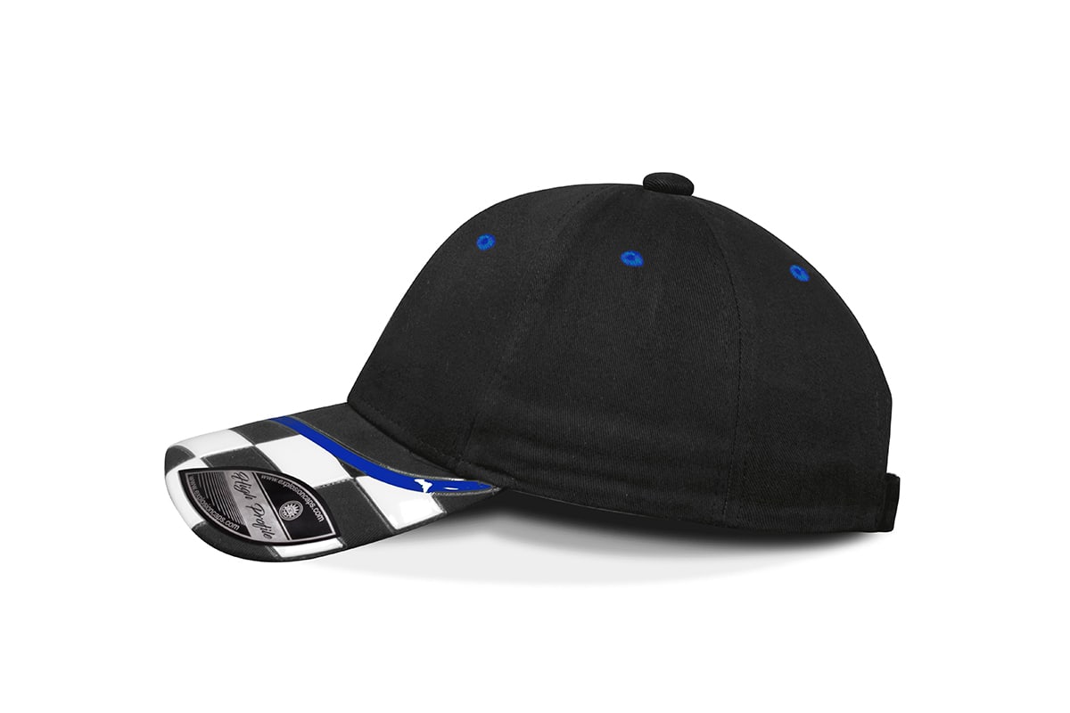Gorra Racing, Frente Negro, Visera Azul Rey, Trasero Negro